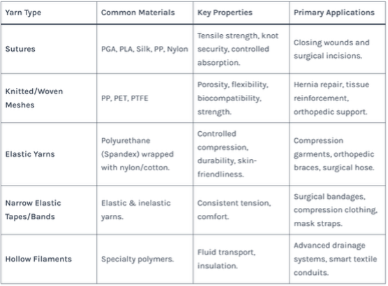 Table 1: Medical Yarn Types, Materials, and Primary Applications