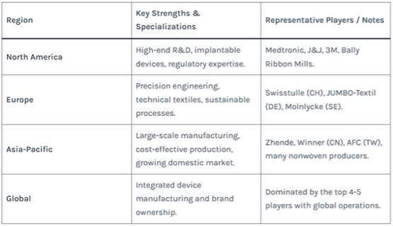 These companies often produce yarn and fabric for their own finished medical devices. They dominate the market, with the top four players holding over 30% share.